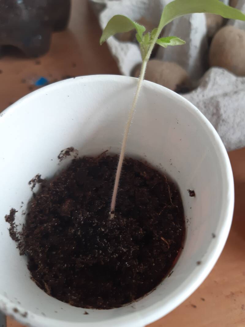 Ook kun je ervoor zorgen dat je plantje nog meer sterkere wortels krijgt bij het verspenen. Zie je die haartjes aan de stengel van het plantje? Dit zijn wortelhaartjes. Als je het plantje dus dieper verspeent in je potgrond dan vormen zich daar dus weer wortels, waardoor je een sterke tomatenplant krijgt. Succes en ik houdt jullie op de hoogte. De volgende stap is namelijk het verplanten.